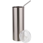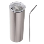 Home Sublimation Products Tumbler Luma Steel, Stainless Steel Skinny Tumbler – 20oz – Silver – Clear Lid and Straw