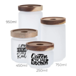 Introducing our Sublimation Glass Storage Jar with Wood Lid, a stylish and versatile solution for storing and organizing various items in your home or office. Made from high-quality glass, this storage jar provides a frosted and elegant container that can be personalized with your own unique designs through sublimation printing.